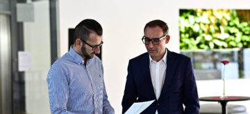 Die beste Location das neue Gewand den Mitarbeitern zu präsentieren ist die dort wo IT die Kommunikation trifft, nämlich am Campus Hagenberg.