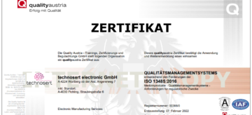 Seit 7. Februar 2022 ist das integrierte Managementsystem der technosert electronic auch ISO13485 zertifiziert!